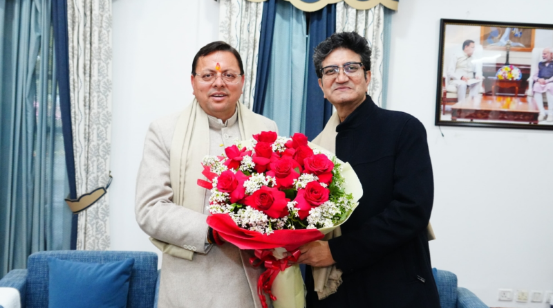 उत्तराखंड के मुख्यमंत्री पुष्कर सिंह धामी से आज मुख्यमंत्री आवास में केंद्रीय फिल्म प्रमाणन बोर्ड (सीबीएफसी) के अध्यक्ष, प्रख्यात लेखक,