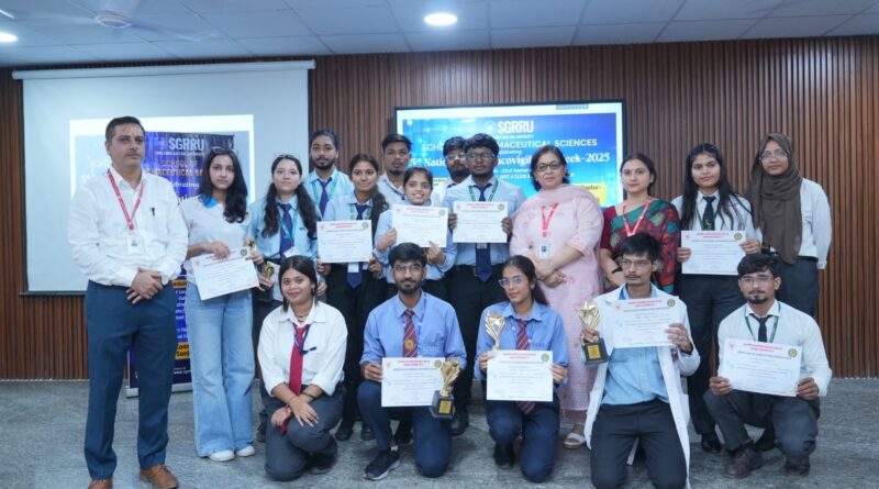 देहरादून। श्री गुरु राम राय विश्वविद्यालय के स्कूल ऑफ फार्मास्यूटिकल साइंसेज में 17 से 23 सितम्बर 2025 तक 5वाँ राष्ट्रीय फार्माकोविजिलेंस सप्ताह उत्साहपूर्वक आयोजित किया गया। सप्ताह की शुरुआत स्कूल की संकायाध्यक्षा प्रो. दिव्या जुयाल, विभागाध्यक्षों तथा एसजीआरआरआईएमएचएस के फार्माकोलॉजी विभाग की सहायक प्राध्यापक डॉ. भावना सिंह और डॉ. कविता द्वारा दीप प्रज्वलित कर की । इस अवसर पर विशेष व्याख्यान के माध्यम से विशेषज्ञों ने फार्माकोविजिलेंस के महत्व, दवाओं के विपरीत प्रभावों की रिपोर्टिंग की प्रक्रिया और समाज पर इसके प्रभावों पर विस्तार से प्रकाश डाला।