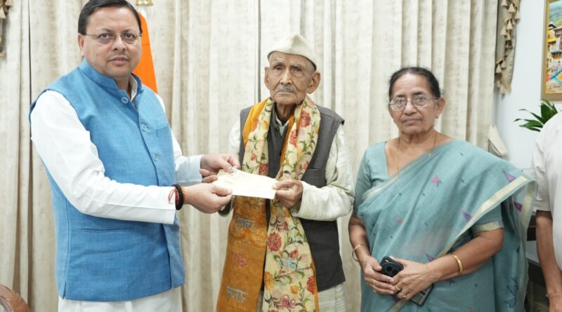 Bharat News:- 96 वर्षीय जबर सिंह रावत ने मुख्यमंत्री राहत कोष में दान किए ₹7 लाख, मुख्यमंत्री पुष्कर सिंह धामी ने की सराहना।