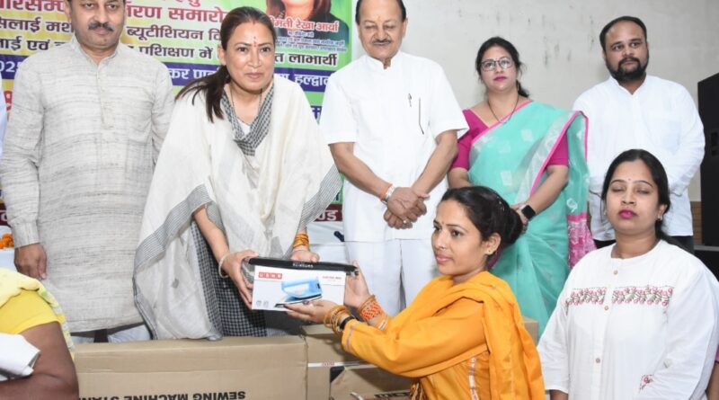 Bharat News:- बेटियों में विकसित करें लीडरशिप क्वालिटी कैबिनेट मंत्री ने प्रशिक्षण प्राप्त महिलाओं को बांटी सिलाई और ब्यूटीशियन किट।
