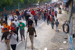 Bharat News:- 90 फीट ऊंचे नए ध्वजदण्ड को कंधों पर उठाकर श्री दरबार साहिब पहुंची संगतें श्रीमहंत देवेन्द्र दास जी महाराज के जयकारों वा विधि विधान से हुआ पूजा अर्चना।