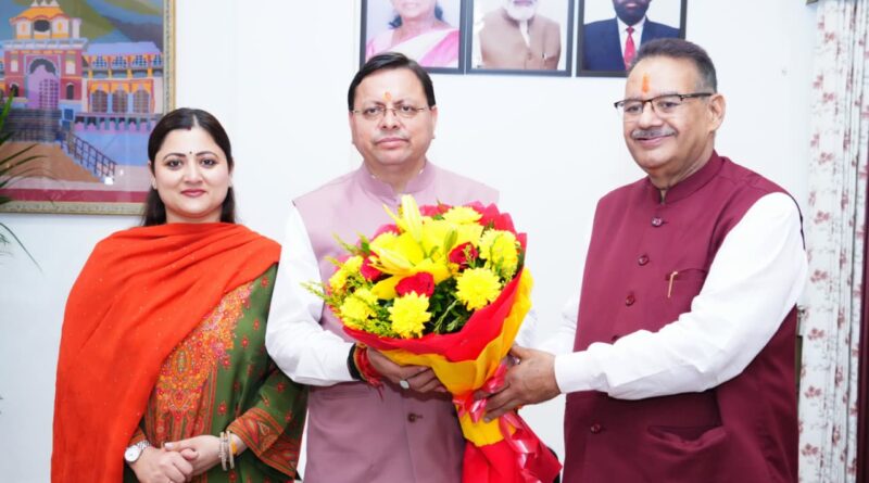 प्रदेश के मुख्यमंत्री पुष्कर सिंह धामी को दीपावली की बधाई और शुभकामनाएं देते कैबिनेट मंत्री गणेश जोशी