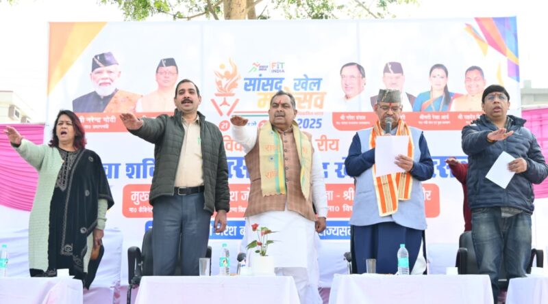 सांसद खेल महोत्सव 2025 (विकासखण्ड स्तरीय) कार्यक्रम उद्घाटन करते कैबिनेट मंत्री गणेश जोशी