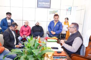 कैंप कार्यालय में जनसुनवाई कार्यक्रम के दौरान लोगों की समस्याएं सुनते कैबिनेट मंत्री गणेश जोशी