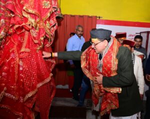 मुख्यमंत्री पुष्कर सिंह धामी ने शक्ति मंदिर एवं बाबा काशी विश्वनाथ मंदिर में की पूजा-अर्चना, संतों के आशीर्वचनों के शिलापट्टों किया लोकार्पण