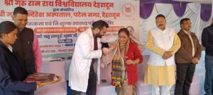 देहरादून। श्री गुरु राम राय विश्वविद्यालय एवम् महंत इन्दिरेश अस्पताल, देहरादून के सौजन्य से श्री गुरु राम राय पब्लिक स्कूल, देवी रोड, कोटद्वार में मंगलवार, 02 दिसम्बर 2025 को कैंसर जागरूकता एवं निःशुल्क स्वास्थ्य परीक्षण शिविर का सफल आयोजन किया गया। इस अवसर पर 1226 मरीजों ने शिविर का लाभ उठाया। शिविर में अस्पताल के विशेषज्ञ चिकित्सकों ने स्वास्थ्य परामर्श दिया तथा रोगियों को निःशुल्क दवाइयाँ वितरित की गईं।