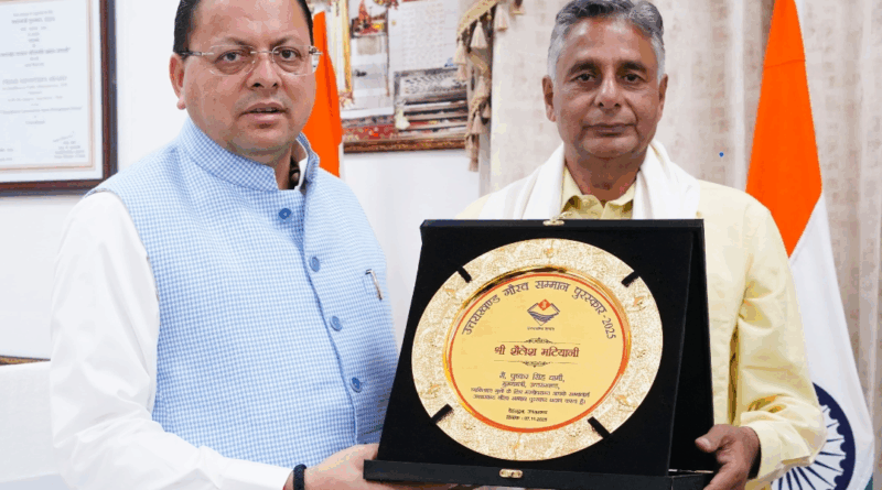 मुख्यमंत्री पुष्कर सिंह धामी ने आज मुख्यमंत्री आवास में आयोजित एक सादगीपूर्ण एवं गरिमामय समारोह में प्रख्यात हिन्दी साहित्यकार स्वर्गीय शैलेश मटियानी को प्रदत्त “उत्तराखण्ड गौरव सम्मान पुरस्कार–2025” उनके पुत्र राकेश मटियानी को प्रदान किया। यह सम्मान स्व. मटियानी की साहित्यिक उपलब्धियों, हिन्दी कहानी जगत में उनके अमूल्य योगदान तथा उत्तराखण्ड की सांस्कृतिक विरासत को सशक्त पहचान दिलाने के लिए दिया गया है।