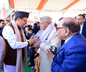 गणतंत्र दिवस के अवसर पर राज्यपाल लेफ्टिनेंट जनरल गुरमीत सिंह (से नि) ने सोमवार को परेड ग्राउंड में आयोजित गणतंत्र दिवस के मुख्य समारोह में राष्ट्रीय ध्वज फहराया और भव्य परेड की सलामी ली। कार्यक्रम में राज्यपाल लेफ्टिनेंट जनरल गुरमीत सिंह (से नि) और मुख्यमंत्री पुष्कर सिंह धामी द्वारा उत्कृष्ट प्रदर्शन करने वाले पुलिस अधिकारियों को पदक अलंकरण कर सम्मानित किया गया साथ विभिन्न अधिकारियों को भी उनकी सराहनीय सेवाओं के लिए सम्मानित किया।