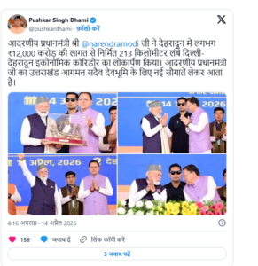 उन्होंने कहा देवभूमि का एक नया इतिहास बनेगा जिसमें एक जिले से दूसरे जिले की दूरियां कम होगी, बॉर्डर क्षेत्रों में जाने के लिए दूरियां कम होगी. भविष्य में एक अच्छी और बेहतर सड़के राज्य को मिलने वाली हैं.