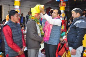 भंडारी थोक से मनीष भंडारी,मेहता थोक से महेंद्र सिंह मेहता एवं दिनेश भट्ट,कमदी थोक से कुलभूषण पंवार को पगड़ी भेंट की गयी।