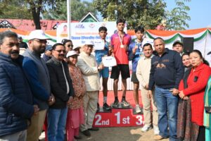 कैबिनेट मंत्री गणेश जोशी ने खिलाड़ियों से परिचय प्राप्त कर उनका उत्साहवर्धन किया तथा 800 मीटर दौड़ प्रतियोगिता के विजेता खिलाड़ियों को पुरस्कार प्रदान किए।